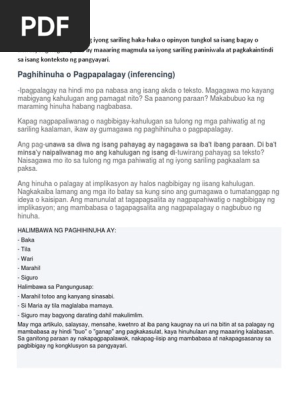Magkakaroon ng maraming hinuha bago ka makarating sa dulo ng kwento. Paghihinuha ng Susunod na PangyayariAno ang PAGHIHINUHAAng paghihinuha ay prediksyon sa mangyayari gamit ang mga impormasyon at pangyayariIto ay ang mga himatos clues bakas tanda o palatandaanAng paghihinuha ay madalas ginagamit sa mga kwento at nobelaMga halimbawa ng PAGHIHINUHA. Some of the worksheets for this concept are Basic education filipino department pamantasang holy angel.