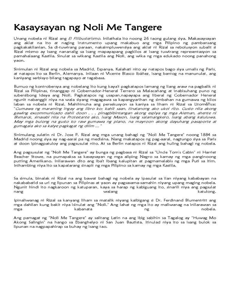 Kasaysayan ng noli me tangere Unang nobela ni Rizal ang El FilibusterismoInilathala ito noong 26 taong gulang siya. Kahit anong pagsubok sa atin ng tadhana ay malalampasan natin ito basta t tunay ang iyong pag-ibig. - Hindi lamang pamapanitikan ang uri ng salitang.