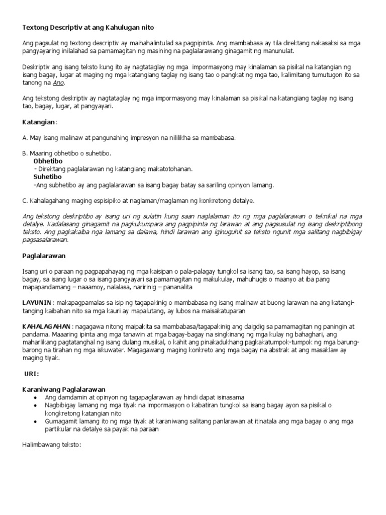 Kahalagahan Ng Tekstong Deskriptiv