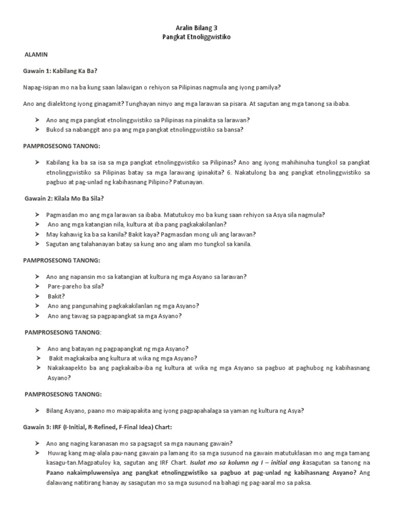 Aralin Bilang 3 Pangkat Etnoliggwistiko