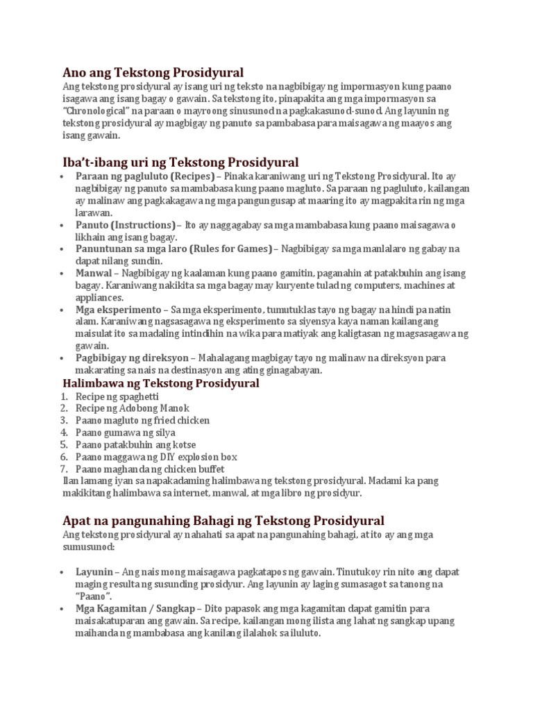 Ano Ang Mga Halimbawa Ng Tekstong Prosidyural