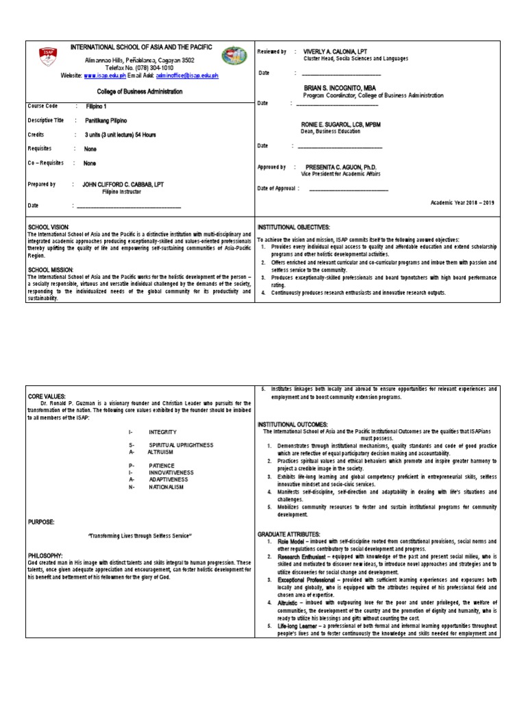 Menchu Dela Cruz Guro sa Filipino II Punong-guro Ika- 12 ng Pebrero 2016 DAHON NG PAGPAPATIBAY Ang pag-aaral na ito na may pamagat na Kahalagahan ng asignaturang Filipino sa Kolehiyo ay iniharap at inihanda ng mga mag-aaral na sina Albao Ronald Guilaran Rema Salonga Jovi Lloyd C Santiago Franco Niño R Tseng Shawnjojo i. Ang asignaturang Filipino ay isa sa mga asignatura sa kurikulum ng bansa. Kahalagahan ng Wikang Filipino sa Edukasyon.