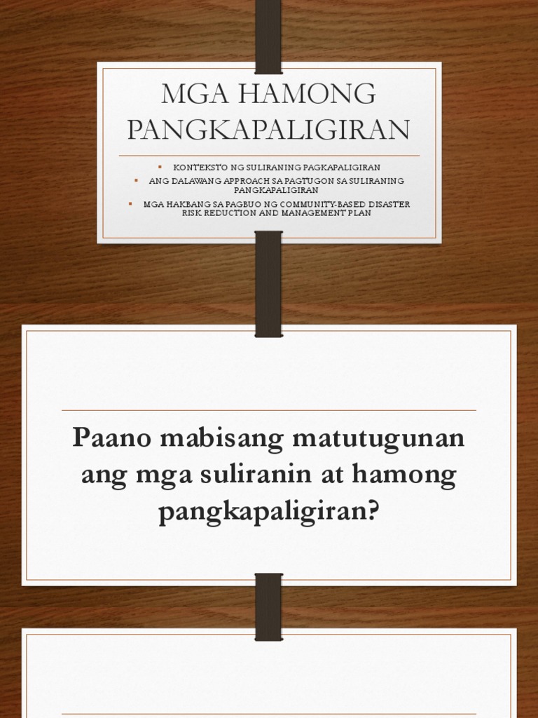 HAMONG PANGKAPALIGIRAN Sa paksang ito ating tatalakayin ang ibat-ibang mga halimbawa ng hamong pangkapaligiran. Ito ba ay tungkulin ng pamahalaan o ng mamamayan. Learn vocabulary terms and more with flashcards games and other study tools.
