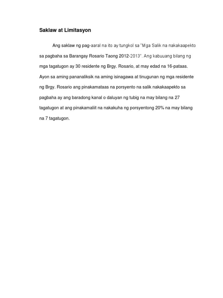 Saklaw At Limitasyon Ng Pag Aaral By Irish Wong