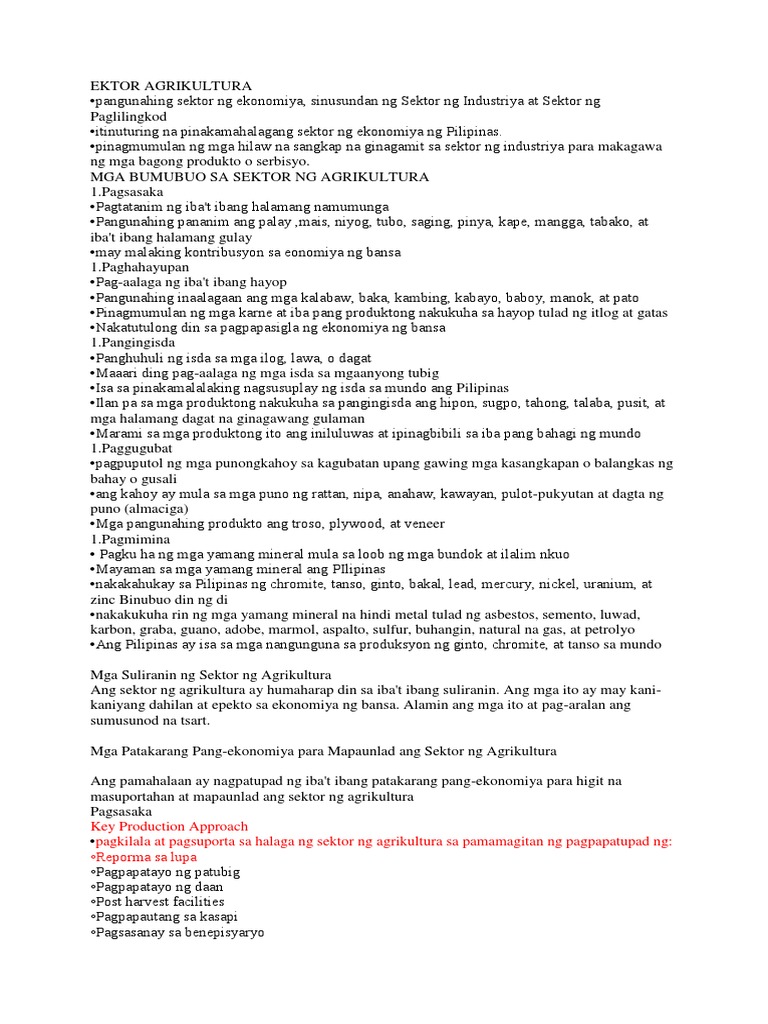 Bagamat nahaharap ang sektor ng agrikultura sa maramimg suliranin ay nag hahanap pa rin ng solusyon ang ating pamahalaan. Sa paggawa ng mga gamot upang mabigyan ng lunas ang mga karamdaman produkto ng sektor ng agrikulura ang natatangi ring solusyon upang matugunan ito. Search inside document.