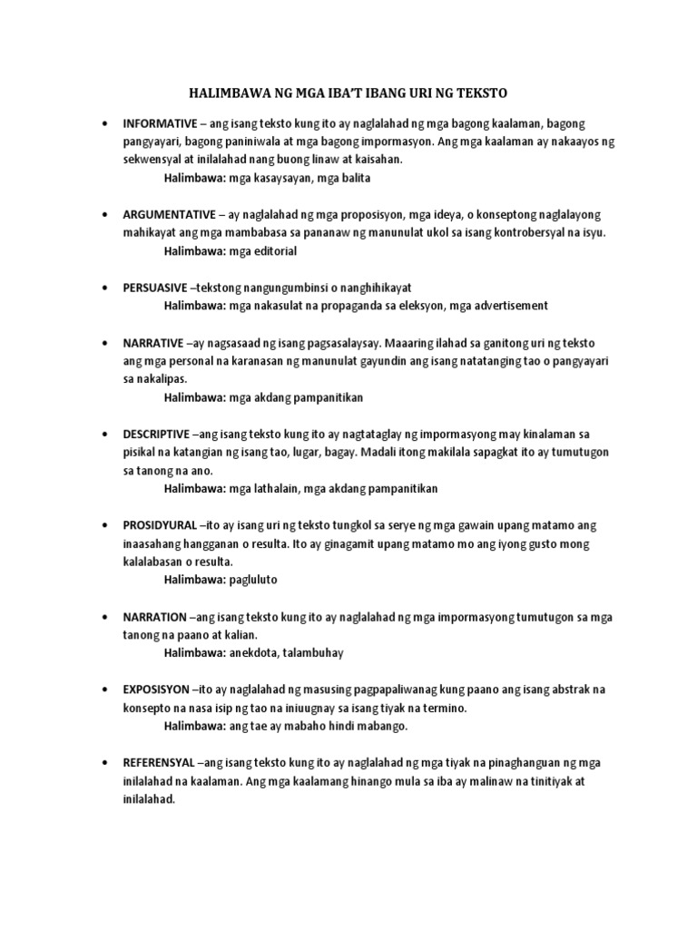 Halimbawa Ng Mga Iba T Ibang Uri Ng Teksto