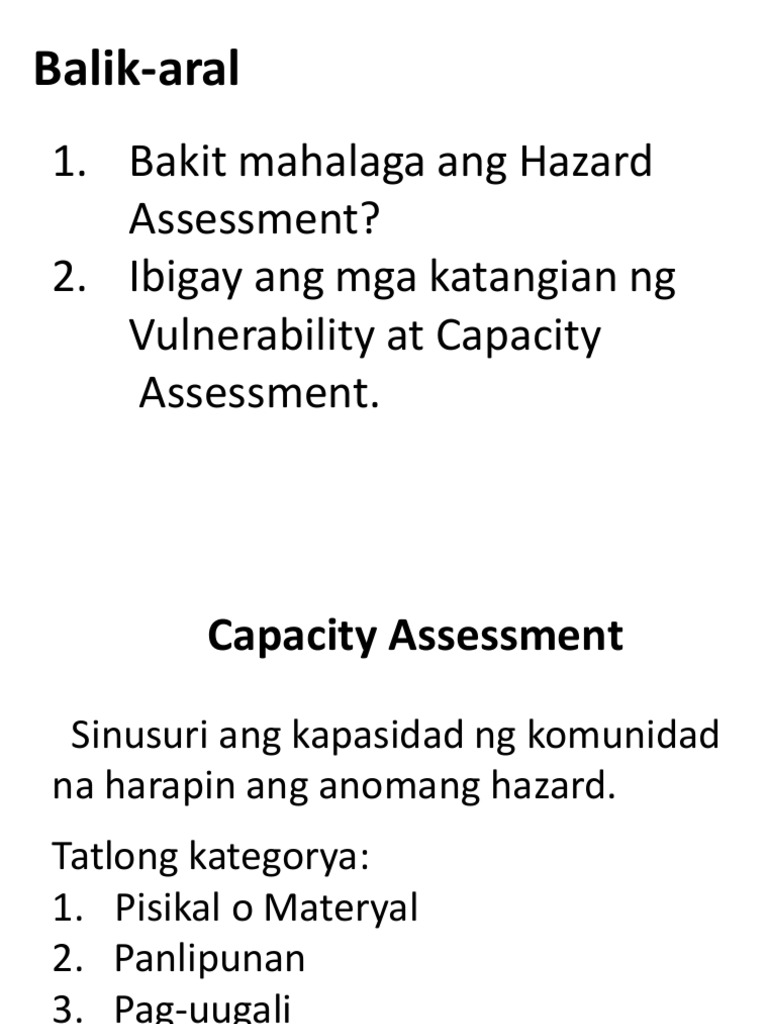 Forewarning Tumutukoy sa panahon o oras sa pagitan ng pagtukoy ng hazard at oras ng pagtama nito sa isang komunidad Force Maaaring natural tulad ng hazard na dala ng hangin tubig tulad ng malakas na pagbuhos ng ulan baha pag-apaw ng ilog flashflood tidal wave at storm surge lupa tulad ng landslide at lahar. A PISIKAL NA KATANGIAN NG HAZARD. 3To instructmagbigay ng mga hakbang na dapat gawin mga ligtas na lugar na dapat puntahan mga opisyales na dapat hingan ng tulong sa oras ng sakuna kalamidad at hazard.