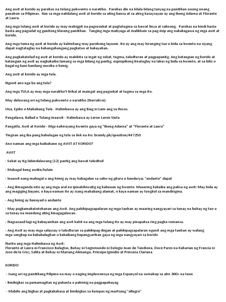 Awit Song at Korido Ito ay mga tulang pamana sa atin ng mga kastila.
