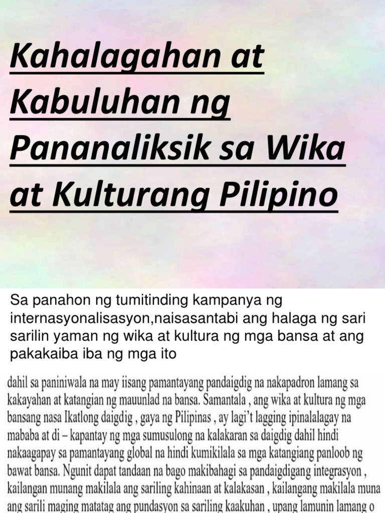 Ano Ang Kahalagahan Ng Wika At Kulturang Pilipino