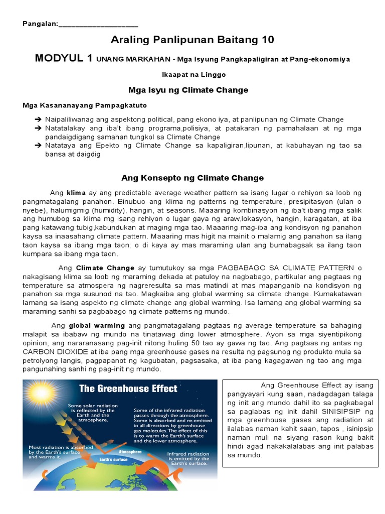 Araling Panlipunan Baitang 10 Modyul 1 Mga Isyu Ng Climate Change