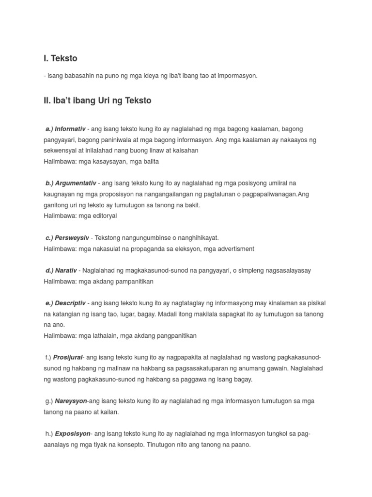 Doc Ibat Ibang Uri Ng Teksto Jeff Bayuga Academia Edu