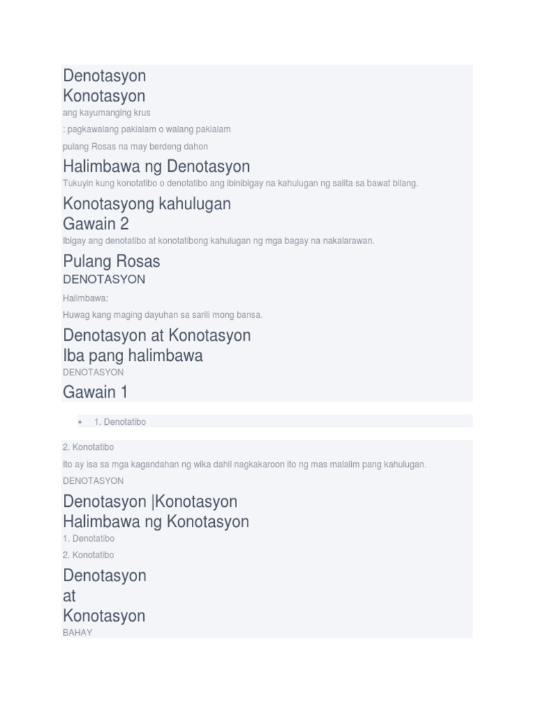 Mga Halimbawa Ng Denotasyon At Konotasyon